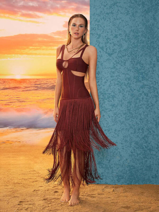 Sexy Hollow Metal Loop Bandage Dress - Alure